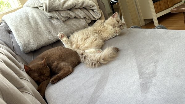Ces deux adorables chats forment un couple inséparable et plein d’amour. Ils sont toujours ensemble, dorment côte à côte et partagent chaque instant de leur journée. 💞