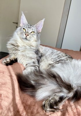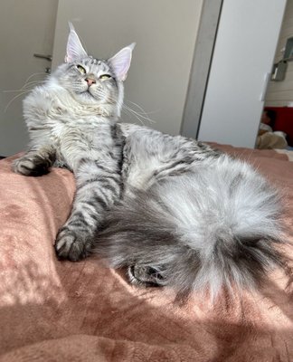 Jeune femelle Maine Coon, âgée d’un an, douce et bien socialisée, cherche une nouvelle famille aimante.Pour plus d’informations, merci de me contacter en message privé.