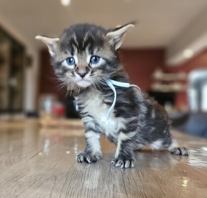 Nous sommes ravis de vous informer de la naissance d'une magnifique portée de chatons Maine Coon le 31 mars dernier.