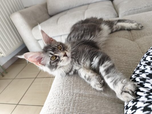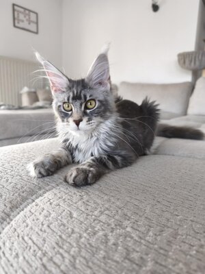 petite femelle maine coon adorable et câline bleu silver mackerel tabby