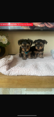 Jolis chiots Yorkshire, élevé en famille, reste 1 mâle et 2 femelles, ils sont habitués aux enfants et ne sont pas peureux. Ils sont vaccinés, pucées, vermifugés et on leurs passeport européen. Ils attendent une famille aimante pour les accueillir