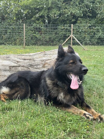 Mâle Berger Allemand à poil long, inscrit au Kennel Club Belge (ALOB), Kai est un chien travaillé en igp, avec une bonne stabilité et une réelle aptitude au travail.