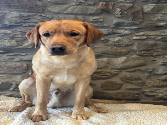 Baloo est un Labrador de couleur Red Fox (roux), une teinte plus soutenue du Labrador beige. Il s’agit bien d’un Labrador pure race, simplement dans une nuance plus intense et plus rare.