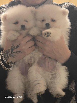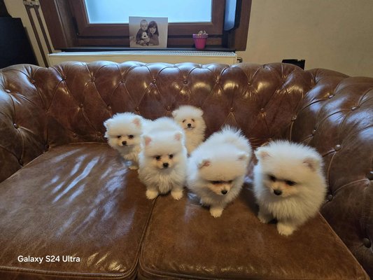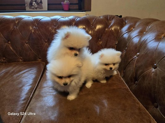 Parents blanc avec pédigrée et multiples champions de beauté dans les lignées et tous blanc de génération en générations.