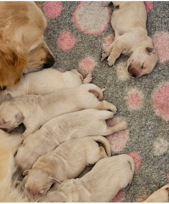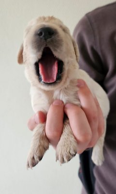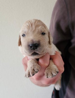Chiot Golden Retriever ( couleur crème) disponible à la réservation. Il reste de disponible à la réservation : 3 mâles.