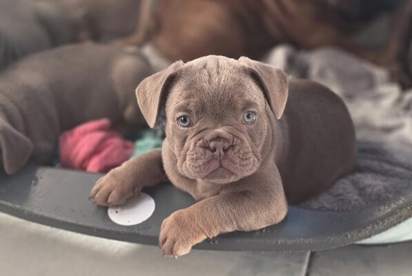 Les parents sont visibles sur place, avec un très bon caractère et une belle morphologie typique du Bouledogue Français.