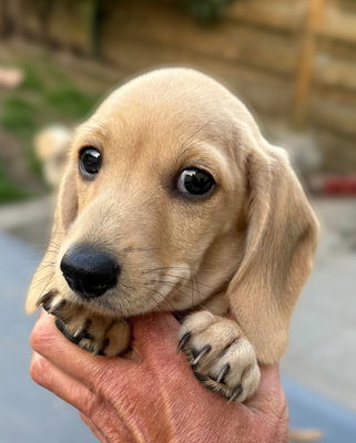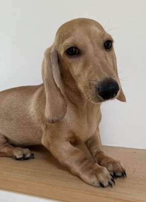 Je m’appelle Latte, magnifique petit mâle teckel nain crème de 4 mois et on dit de moi que ma robe est exceptionnelle. Je suis super attachant car j’adore les câlins et faire ma petite sieste dans les bras de ma maman. Je suis jouette, plein de vie, toujours de bonne humeur et très intelligent.