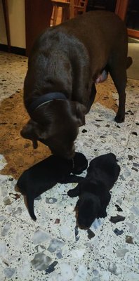 Mère : Labrador chocolat, pure race (visible sur place)