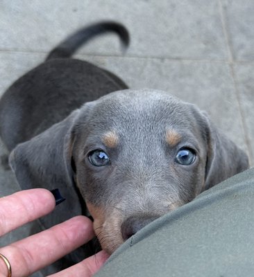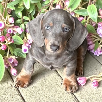 Nous sommes 7 superbes petits teckels nains à la recherche de leur famille pour la vie. Notre robe est vraiment magnifique : bleu et tan et nos yeux sont gris bleuté.