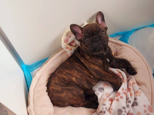 Le 13 janvier Roxie et Charlie sont devenus parents de 2 petites femelles et 1 petit mâle. Ils sont vraiment magnifiques. Nous avons une petite femelle bringé inversé à réserver.