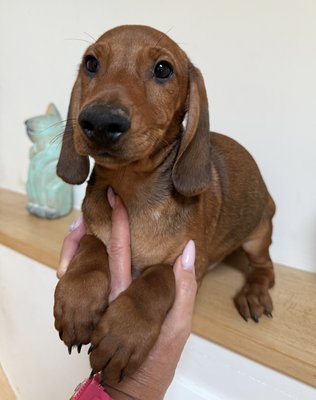 Nous sommes 2 splendides petits frères de taille standard. Nos poils sont ras. L’un est rouge charbonné et l’autre noir et feu.
