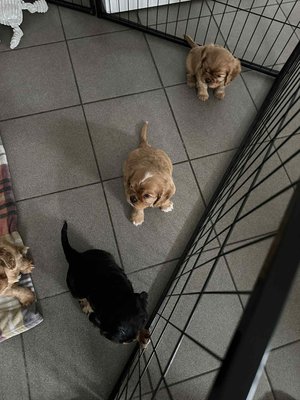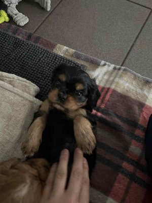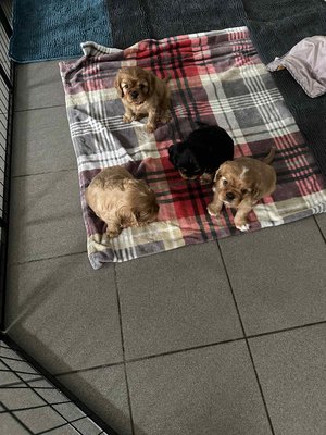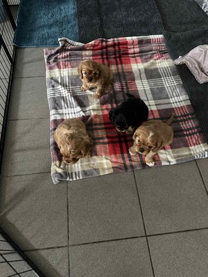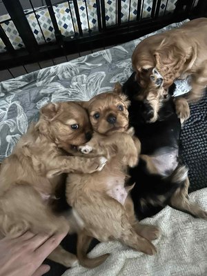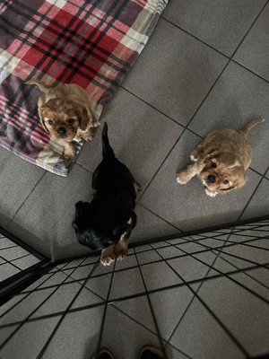 Nous avons de magnifiques chiots Cavalier King Charles,2 mâles en Ruby et 1 mâle Noir Feu. Ils ont actuellement 6 semaines et seront disponibles à partir du 19 octobre. Nos chiots sont élevés socialement à la maison avec nous. Ils sont vermifugés,vacinés,pucà ©s,passeport Européen Belge et décllaré saint par le vétérinaire.Parents visibles sur demande,le papa dispose du pedigree preuve sur demande.