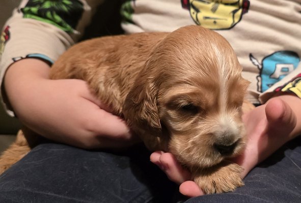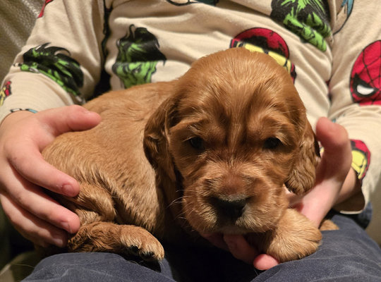 Adorables chiots Cocker Anglais roux et gold, élevés en famille avec beaucoup d’attention et d’amour. Ils sont bien sociabilisés, habitués aux enfants et aux autres animaux, et régulièrement manipulés.