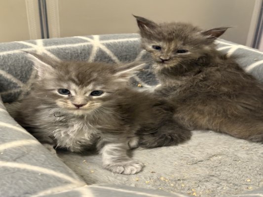 Chatons Maine Coon père Shaded, 4 mâles et 1 femelle. Parents testés pour toutes les maladies génétiques + échographie cardiaque et rénale ok. Pédigrée, pucés, vaccinés, pedigree, vermifugés…. Très sociable vie de famille maison avec chiens grands et petits. Parents visibles. Certificat de bonne santé moins de 72h avant départ. Kit départ chaton. 2 dernières photos sont les cv parents