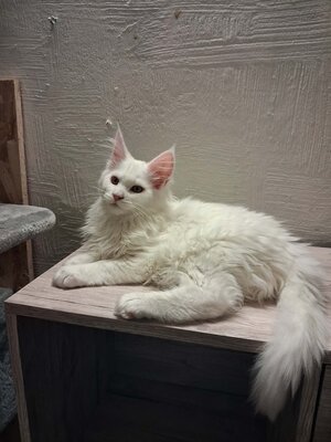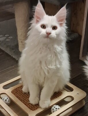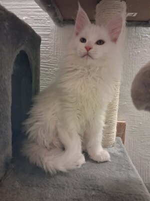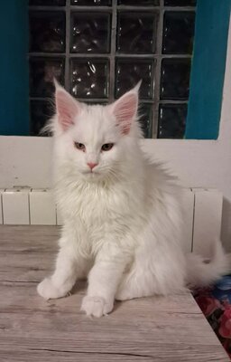 Maine coon, un male, blanc, 3 mois.