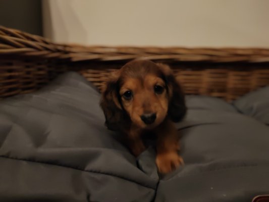 Petit mâle teckel kaninchen poil long chocolat ne et élevé dans la maison 🏡