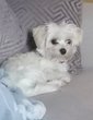 Chiot femelle Morkie, adorable croisement du bichon maltais et du yorkshire. De petit gabarit, couleur blanche et sable. De personnalité affectueuse, vive, joueuse et joyeuse au pelage hyppoallergénique doux et soyeux.