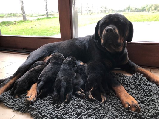 Nous avons le plaisir de vous annoncer que notre femelle Rottweiler rose a mis au monde 9 petites merveilles ce 29 octobre.