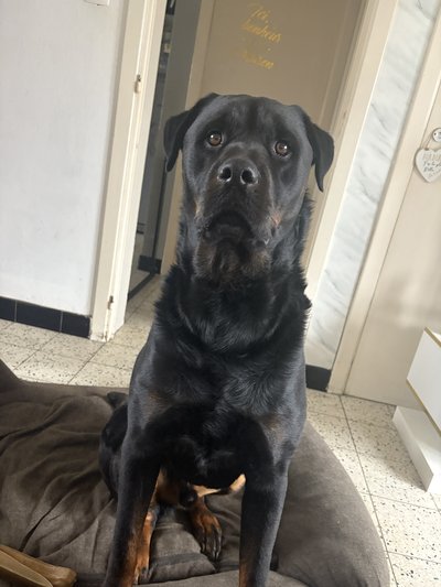 ‏Niro est un Rottweiler mâle de 3 ans. Il s’entend très bien avec les humains, mais il ne s’entend pas avec les autres animaux.