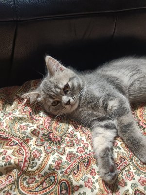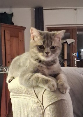 Il y a 7 chatons disponibles, mais je ne saurais pas encore vous dire si ils seront straight ou fold, on ne saura le dire qu'entre 20 et 30 jours après la naissance. Ils sont tous de la même couleur on dirait, blue silver tabby.Les photos sont celles de la dernière portée de Mia, en accord avec les propriétaires. Les chatons ont 6 mois. Les photos seront mises à jour assez souvent. Je mets aussi une photo de la naissance des chatons et des parents. :)