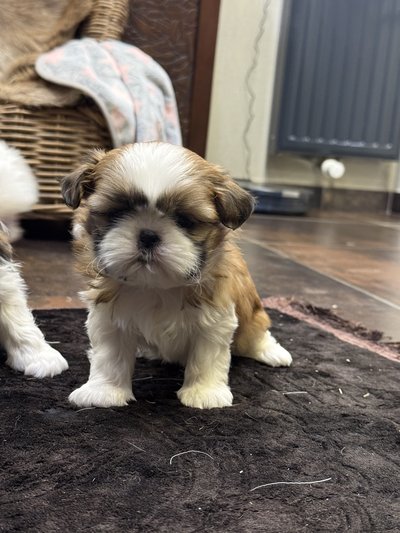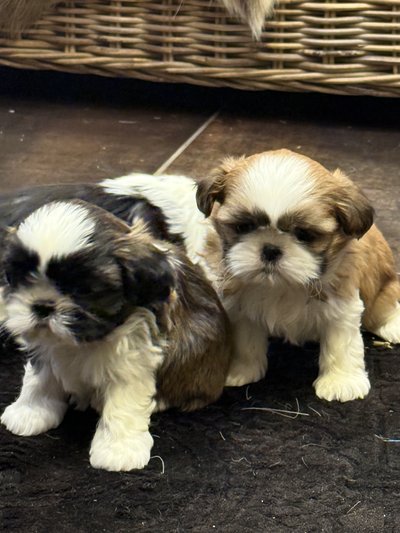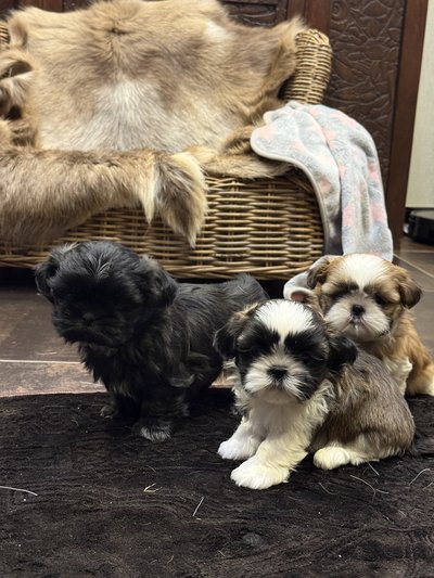 Nous aimerions vous présenter nos magnifiques Shih Tzukes. Ils sont nés le 13 octobre et peuvent quitter le nid à partir du 8 décembre. Il s'agit de 2 filles et de 2 garçons. Le noir et le noir/blanc sont des mâles et les blancs/bruns sont des femelles. Nous avons également un garçon Lilak bientôt disponible.