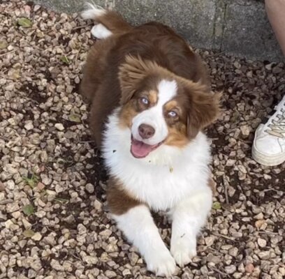 2 magnifique bébé mâle tricolore dont 1 avec un œil bleu disponible de suite pour une chouette famille issue d’une maman berger australien miniature et d un papa spitz pomeranian