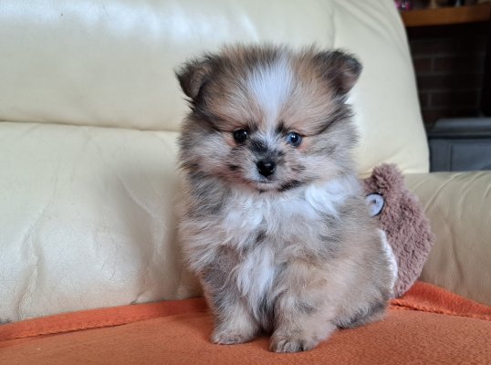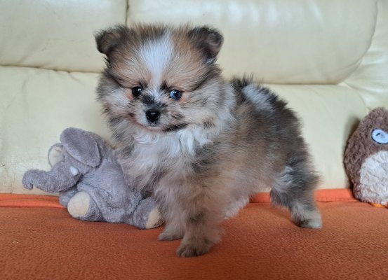 Bonjour, je vous présente ma magnifique petite dolly spitz femelle naine de couleur fauve merle aux yeux vairons. Elle pourra nous quitter à partir du 28.02 et est en ordre de puce, vaccins, vermifuge x 4, carnet européen, pédigrée nvbk, garantie et sera accompagnée d' un pack de départ royal canin. ses deux parents sont également visibles à la maison. élevée en famille c'est une petite joyeuse et proche de l'homme. Elle recherche une famille aimante qui saura en prendre grand soins.