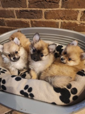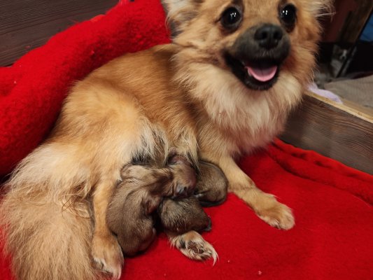 Bonjour nous avons 3 femelles et un mâle maman orange papa blanc de très petites tailles élevé en famille ils sont très sociable joueurs habitué au petit mais aussi au grand chien