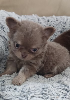 Sublime chihuahua mâle très typé. Petit mâle lavande pucé, vaccinsé, vermifugé régulièrement et éduqué sur puppy trainer. Il est très affectueux grâce à son évolution dans un cadre familial.. Il recherche une super famille pour le combler d'amour. Il partiroa avec un kit de départ royal canin ainsi qu'un harnais, laisse et un doudou. Parents visible sur place. N'hésitez pas pour plus de renseignements