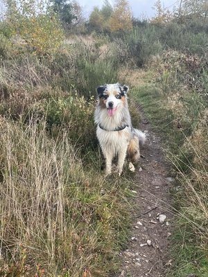 Superbe mâle Berger Australien bleu merle de 15 mois avec pedigree Saint-Hubert disponible pour saillie. Élevé en famille à la campagne, il grandit au quotidien avec trois enfants, ce qui lui confère un caractère doux, stable et parfaitement équilibré. Habitué à un environnement varié, il vit au contact des animaux de la basse-cour (poules, paons) et s’adapte avec calme et intelligence à son entourage.