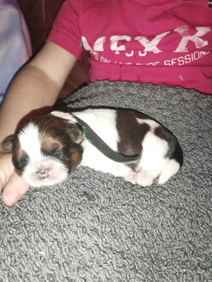 Vasco des pommiers du pays d'othe est fière de vous présenter sa toute 1 ère portée,la maman est un très petit gabarit (3kg).il y a 2 mâles:collier noir et collier beige.et 2 femelles: collier rouge et collier jaune.(l'une des deux sera disponible vers ses 5 semaines car nous gardons l'une des deux femelles)le Papa est visible à la maison en poil long rouge et blanc,top caractère et pedigrée la maman est de lignée from audreys paradise.les 2 mâles sont disponibles à la réservation dès maintenant.vie de famille manipuler par deux enfants au quotidien.nous n'avons que 4 Shih-tzu à la maison.3 générations visible