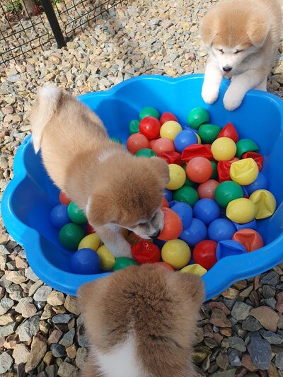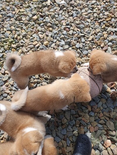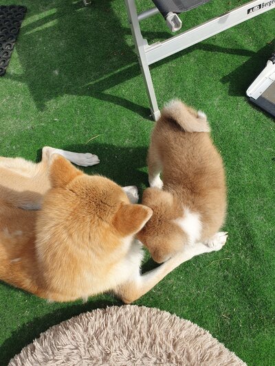 Nous sommes très reconnaissants de la naissance de 6 chiots, le 27 février 2026, dans notre salon. Eishi, la maman, s'est très bien débrouillée et la maman et les chiots se portent bien.