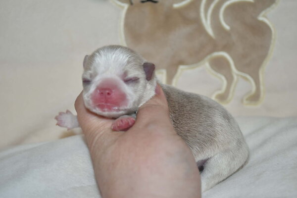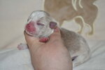 Le papa est chocolat et blanc, il pèse 2 kg, il a le poil long. Il est testé santé clear et il est indemne de luxation des rotules. Il est testé adn, fci (lof,losh)