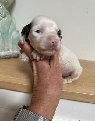 Magnifique portée de teckels nains choco piedbald à poils longs dont certains peuvent encore être réservés.