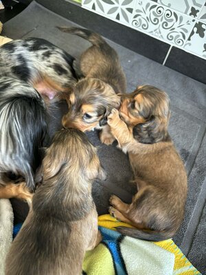3 adorables femelles teckel de gabarit kaninchen sont a la recherchent de leur futures familles 🥰