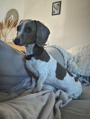 * Mère : teckel naine piebald isabelle, au tempérament doux, affectueux et dynamique.