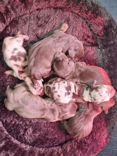 Nous sommes un petit élevage familial passionné. Notre teckel Sorah a eu 6 magnifiques chiots, 5 mâles encore disponibles à l’adoption.