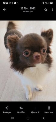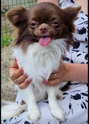 Toby petit chihuahua mâle âgé de 5ans attend vos petite fifilles pour saillie mon Toby est de couleur brun et blanc a poil long il es calme et gentil et tres affectueux 100% de taux de réussite en saillie alors n'hésitez pas a me contacter au pour toute information.