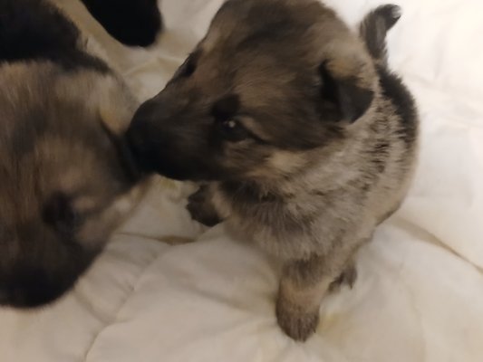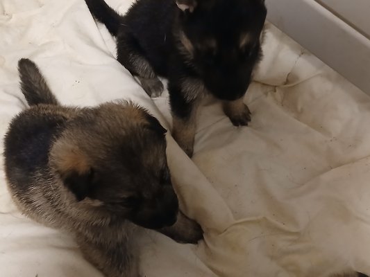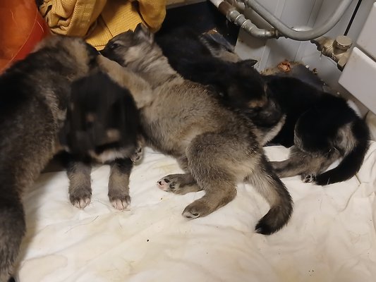 Portee de chiots issu d'un croisement pere berger allemand et mere berger blanc suisse.