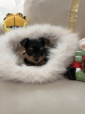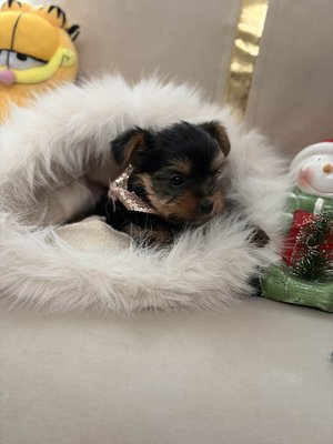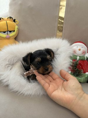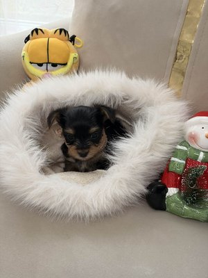 Les deux parents sont de véritables Yorkshire Toy, au très petit gabarit :